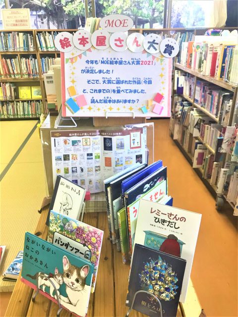 1階児童室では,月刊誌「MOE」に掲載されている絵本の中で