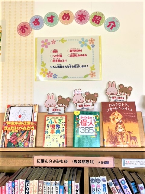 他にも,新聞や広報などで紹介された絵本も展示しています。