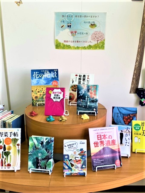 2階一般室では,春にちなんだ本を集めていますので,