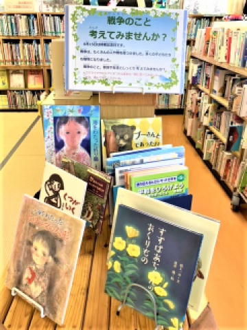 児童室では,これまでの戦争の本やロシアやウクライナの絵本も