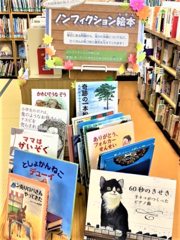 児童図書室では,この秋おすすめの絵本をご準備しています。