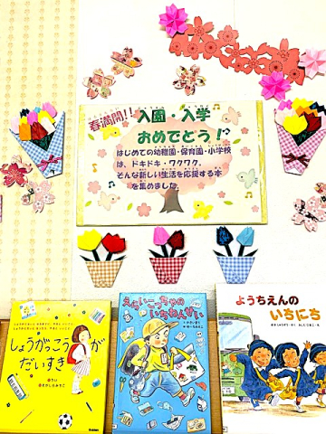 児童図書室では、春らしい絵本を集めました。